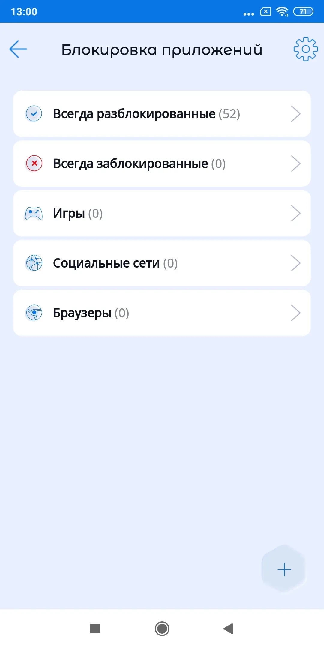 В разделе «Блокировка приложений» все приложения автоматически разбиты по категориям, согласно классификации Google Play Store, AppStore, Huawei AppGallery.
