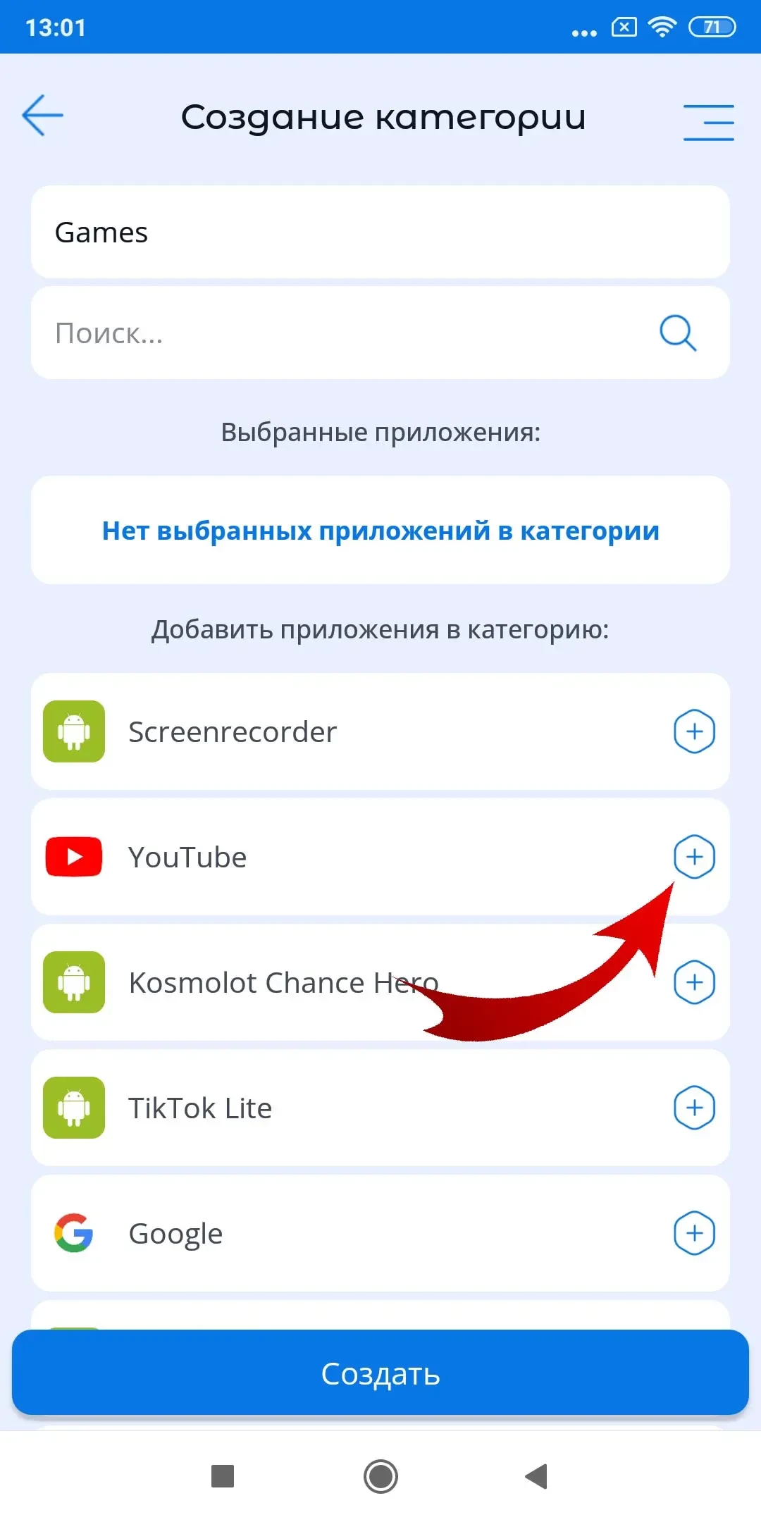 Родители могут создать свою категорию и выбрать только определенные приложения, которые нужно будет ограничивать.