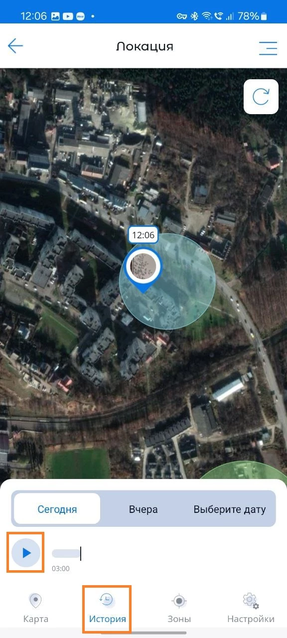 Для того, чтобы посмотреть маршруты по которым передвигался ребенок, перейдите в раздел "Локация", вкладка "История". Далее, выберите день недели по которому хотите посмотреть данные: сегодня, вчера или выберите день в календаре. У вас есть возможность посмотреть историю передвижений за последние 7 дней.