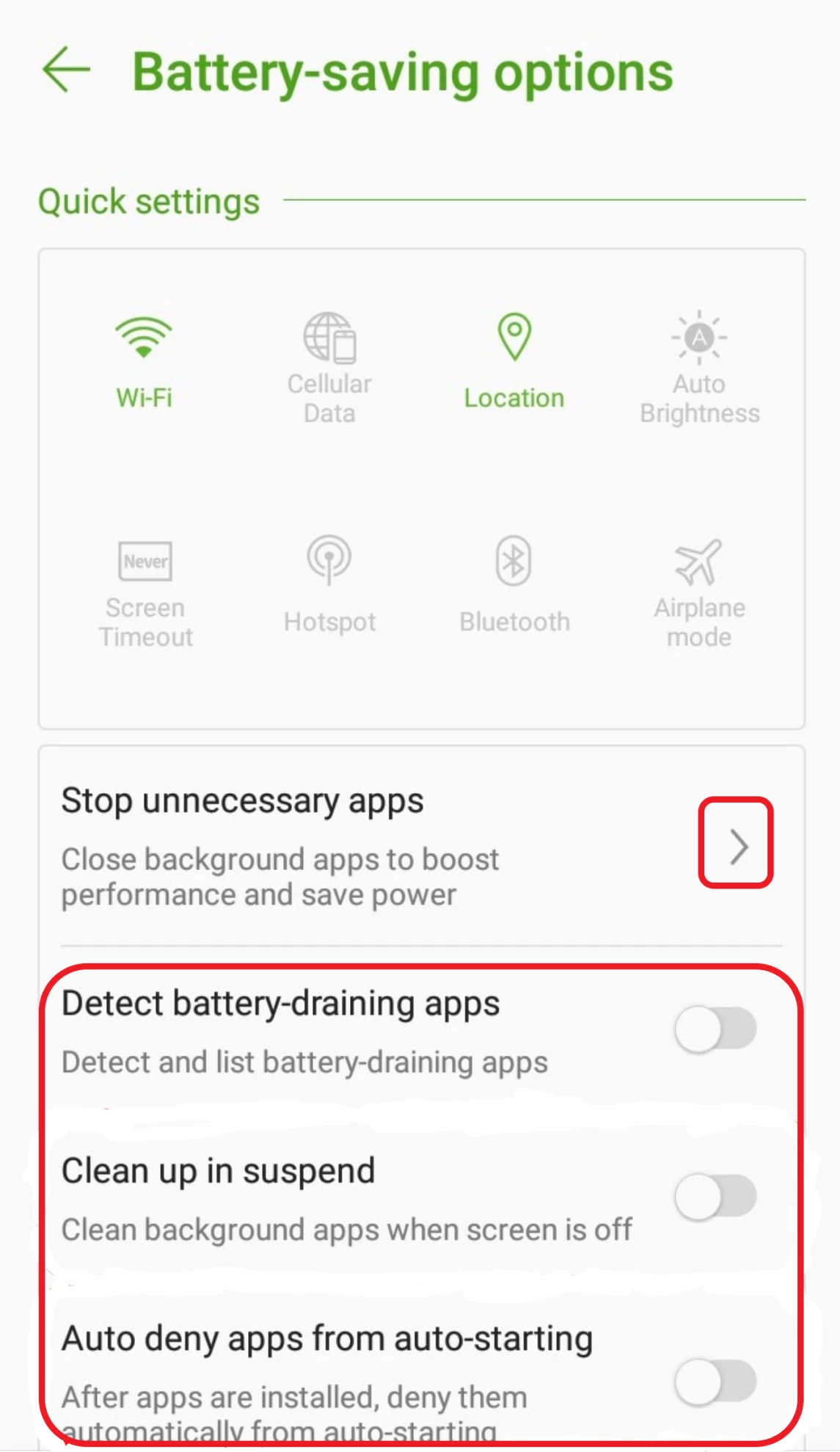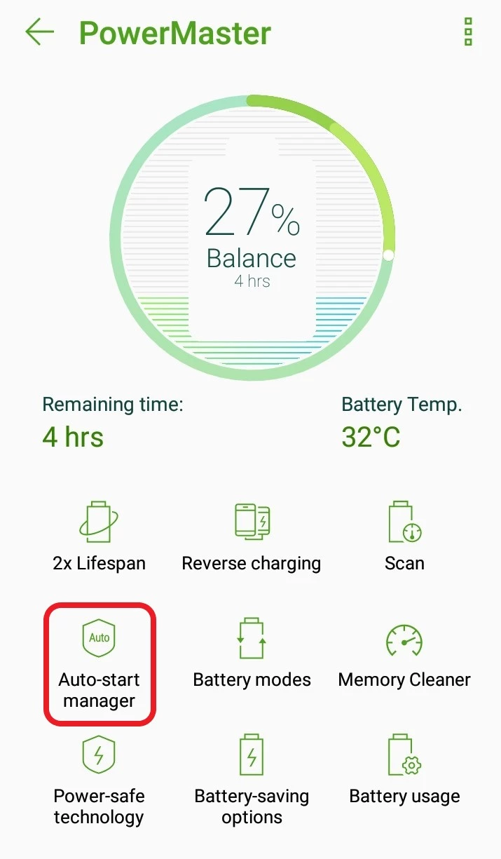 - Настройка оптимизации батареи: Откройте приложение Mobile Manager > перейдите к PowerMaster > Параметры экономии заряда батареи > выключите переключатели напротив: выключение приложений, которые разряжают батарею, очистка в режиме ожидания и автоматический запрет автозапуска > затем перейдите к "Остановить не нужные приложения", найдите Parental Control Kroha, выберите "не останавливать".