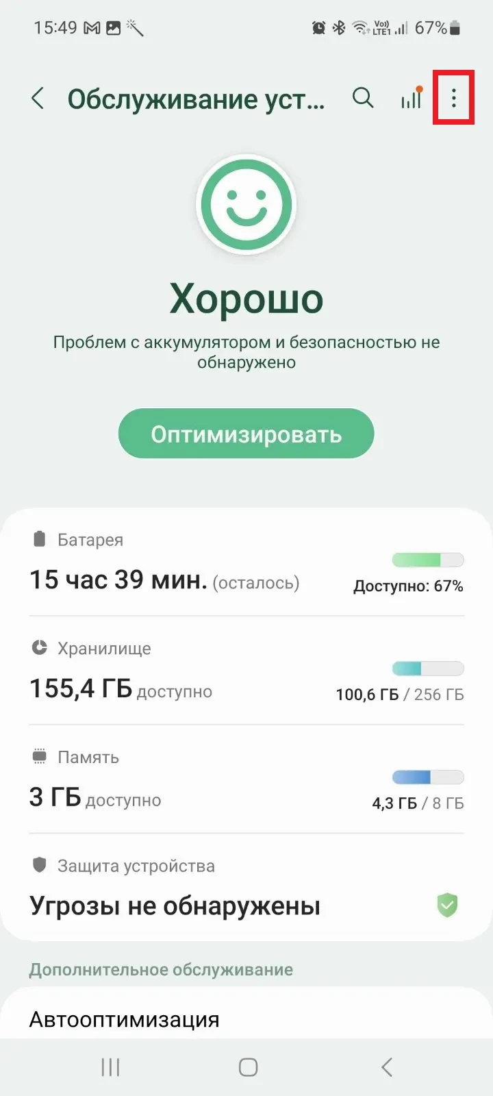 - Откройте приложение "Настройки" на устройстве ребенка > откройте раздел "Приложения" > в верхнем углу экрана нажмите на иконку меню (три вертикальные точки) > выберите пункт "Особые права доступа" > перейдите к "Оптимизация расхода батареи" > найдите в списке Parental Control Kroha и отключите переключатель (не оптимизировать);