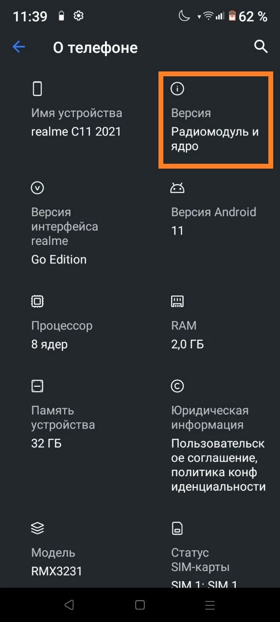 - Перейдите в раздел "О телефоне";