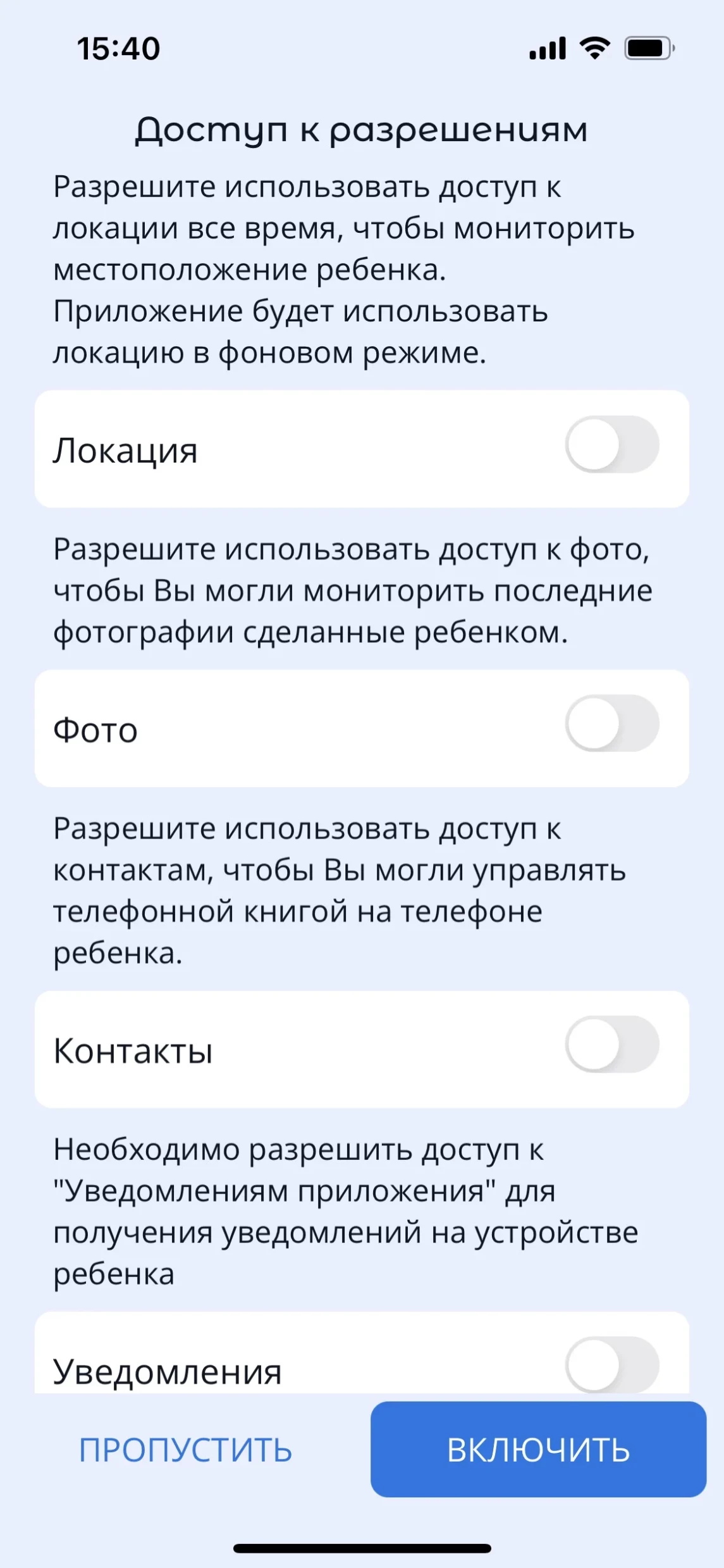 Обратите внимание! Перед установкой Kroha Advanced устройство ребенка должно быть разблокировано (не включена блокировка телефона).