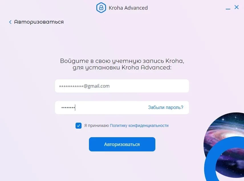- Поставьте галочку напротив "Я принимаю и нажмите кнопку "Авторизоваться".