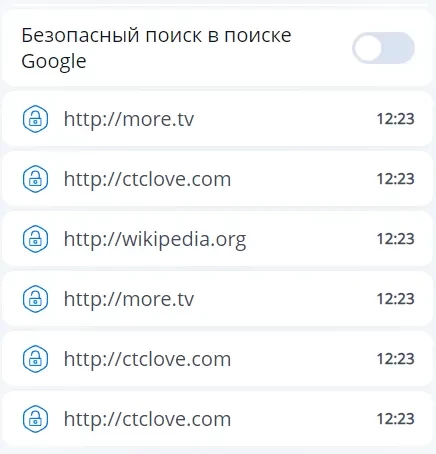 4. Чтобы заблокировать сайт, который отображается в истории посещений, нажмите иконку замка напротив выбранного сайта.