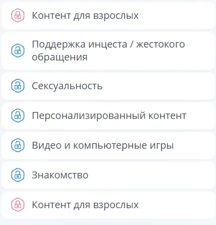 Для блокировки группы сайтов, следует перейти во вкладку «Категории», выбрать нужную и перейти по знаку блокировки напротив выбранной категории. Здесь следует учесть, что наше приложение способно блокировать сайты только в браузерах Google Chrome, Samsung и Huawei.
