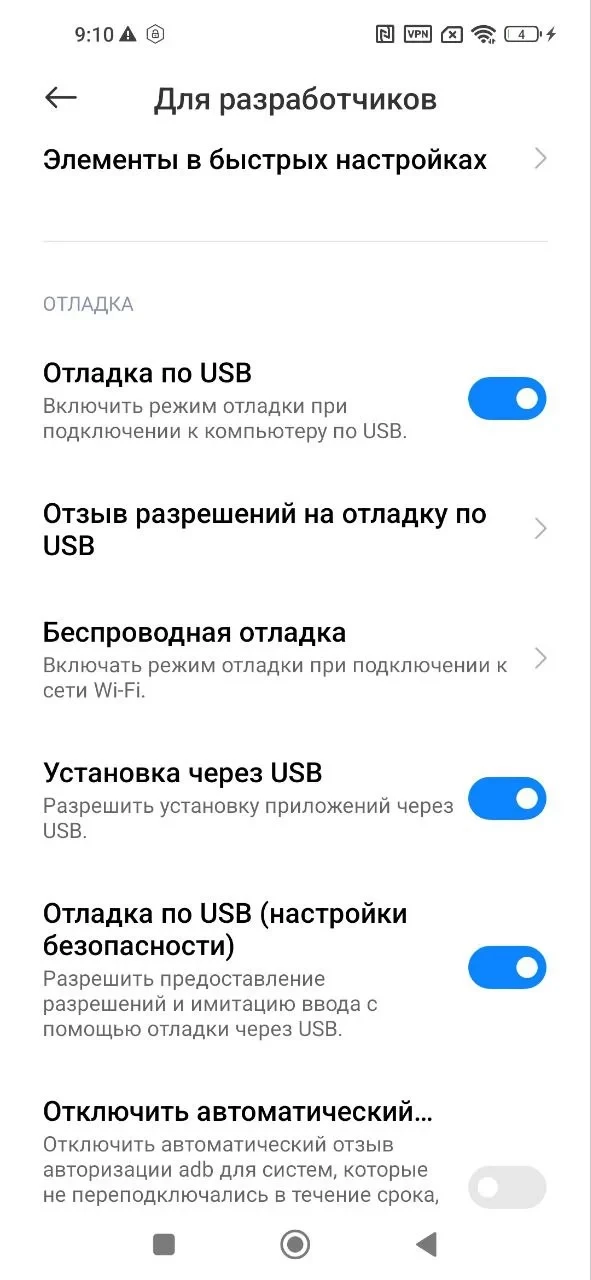 1. На устройстве ребенка откройте параметры разработчика и убедитесь, что переключатель напротив "Отладка по USB" включен. На некоторых устройствах, кроме переключателя "Отладка по USB", в параметрах разработчика есть переключатели "Установка по USB" и "Отладка по USB (настройки безопасности)". Если Вы нашли эти переключатели на устройстве Вашего ребенка, включите их.