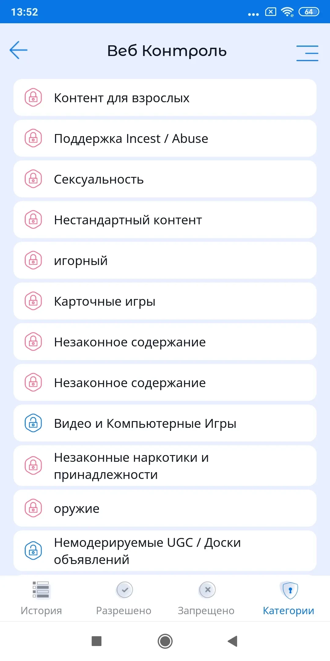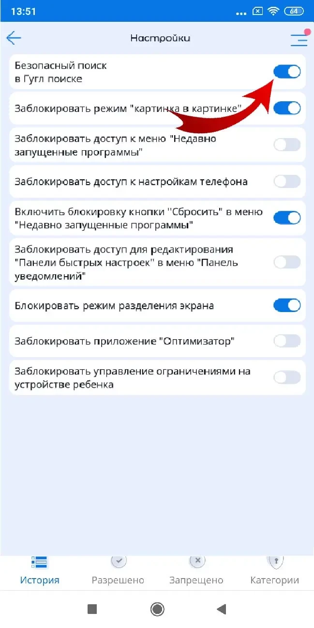 - блокировка нежелательных категорий сайтов, например, «контент для взрослых»;