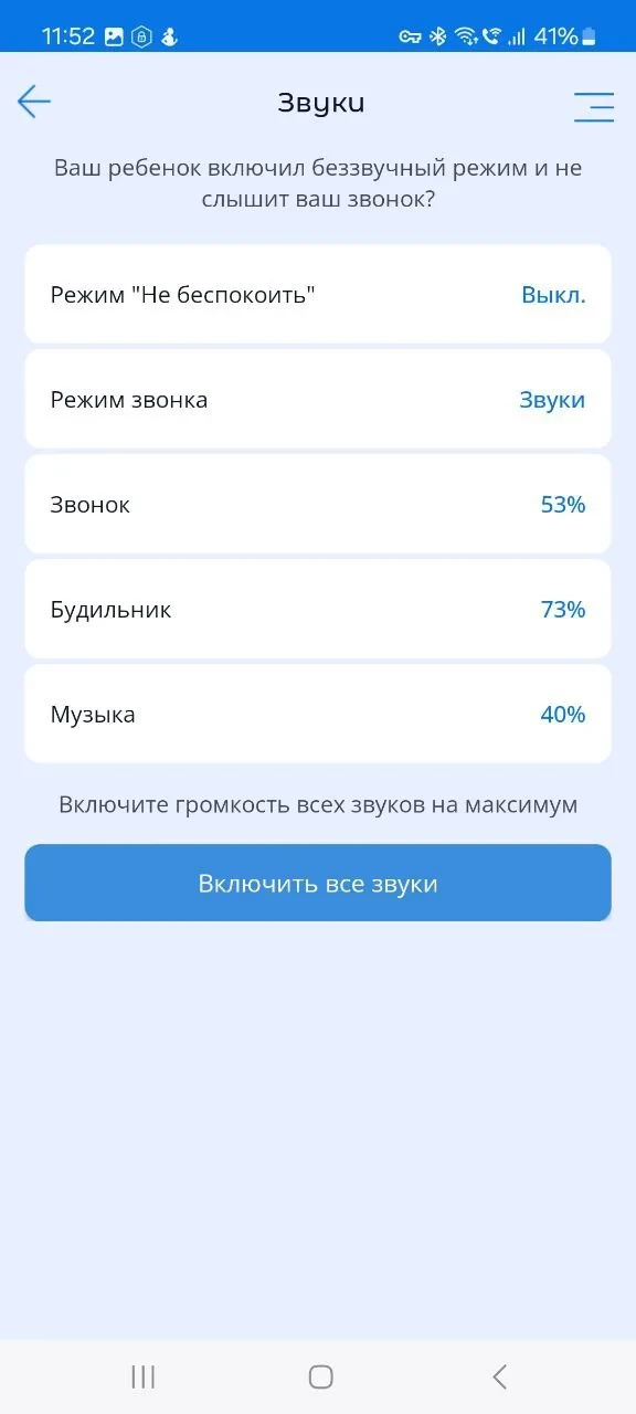 Здесь можно удаленно отключить "Беззвучный режим" на смартфоне ребенка, если ребенок включил его, например, в школе и забыл отключить его. Родители смогут включить звуки на смартфоне ребенка, чтобы ребенок услышал звонок.